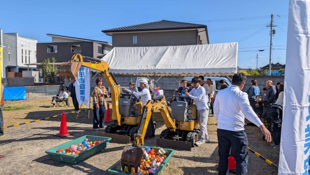 出展内容は参加者がミニユンボで操作を行いボールすくってもらうという内容です。