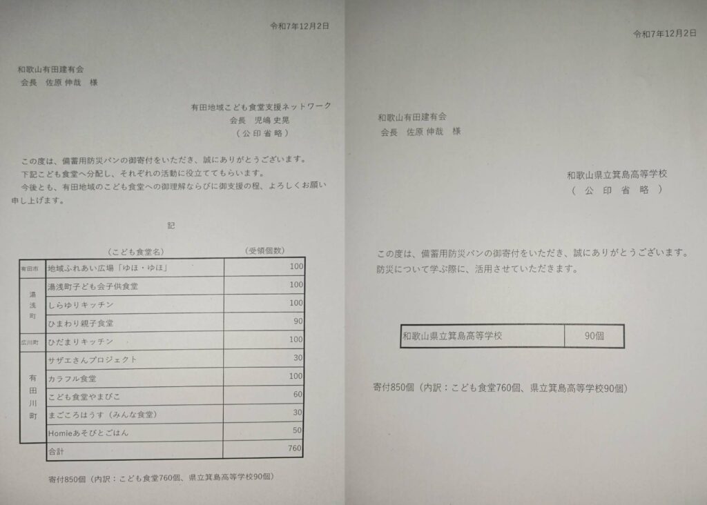 この購入した保存パンが2027年4月に保存期限が来るので子ども食堂を営んでいる団体に寄付させていただきました。